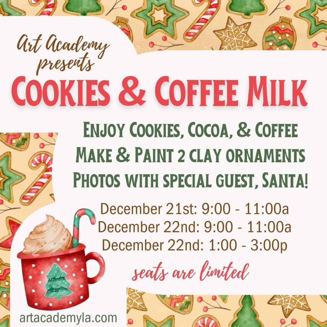 During this event, you and your loved once will create two unique clay Christmas ornaments, while you enjoy cookies, cocoa, and coffee milk. Plus, Santa will be dropping by for photos and fun!