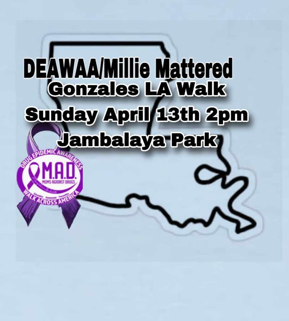 Remember those who have gone too soon due to the drug epidemic. Help us carry the banners of the faces of the Louisiana residents and the banners of “Can you see me now?” There will be free Narcan, fentanyl test strips, and free lock medical bags along with plenty of resources for drug treatment and mental health.