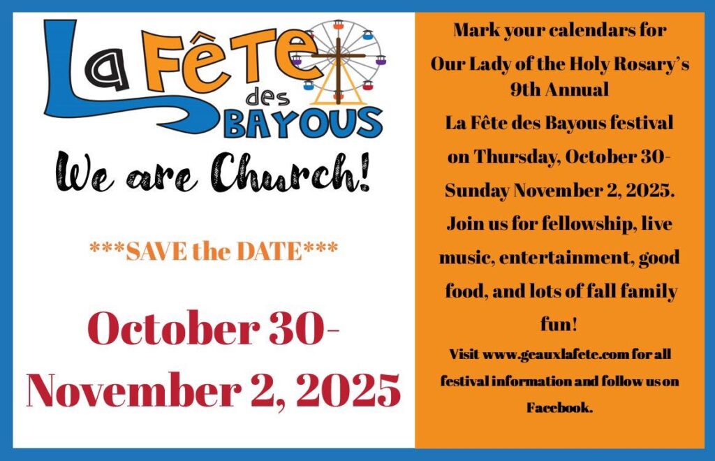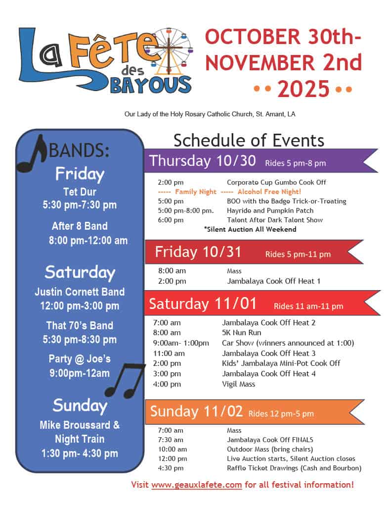 Where: Our Lady of the Holy Rosary Catholic Church (44450 Hwy. 429, St. Amant, LA 70774)